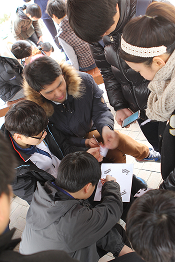 | ▲중·고·청년들이 3.1절 특별행사의 프로그램 중 하나인 ‘조별로 협력하여 태극기 퍼즐 맞추기’에 참여하고 있다. ⓒ사진제공=꽃재교회 |