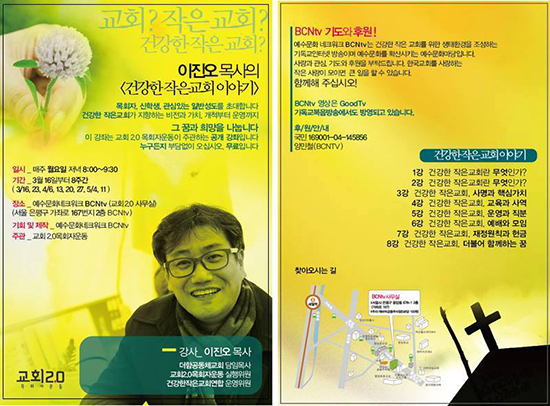 더함공동체 이진오 목사가 오는 3월16일(월)부터 8주간 <건강한 작은교회 이야기> 강좌를 진행한다. 이 목사는 자신의 페이스북에 “<건강한 작은교회 이야기>는 지난 4년간 더함공동체교회에서 성도들과 함께 의논하며 실험하며 일구어온 것들이자, 2005년 시작된 <건강한작은교회연합>, 2011년 시작된 <교회2.0목회자운동>의 여러 선후배들이 함께 고민하며 주장하며 실천해온 것들”이라면서 “우리 시대 건강한 작은교회를 고민하는 목회자와 성도들을 초대한다”는 뜻을 적었다.