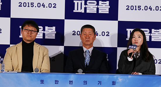 | ▲16일(월) 오후 서울 왕십리CGV에서 <파울볼> 시사회 및 기자간담회가 열린 가운데 김보경 감독(오른쪽이 기자들의 질문에 답하고 있다. 맨 왼쪽은 조정래 감독, 가운데는 김성근 감독. ⓒ사진=지유석 기자 |