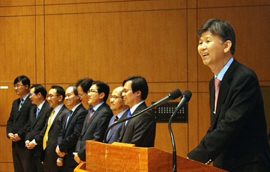 | ▲총신대와 총신대 신학대학원에 재직 중인 교수 11명은 최근 ‘분당중앙장학생 출신 총신교수 정기장학금’을 조성하고, 3월18일(수) 오전 총신대 양지캠퍼스 100주년 기념관에서 첫 ‘장학증서 수여식’을 개최했다. ⓒ사진제공=분당중앙교회 |