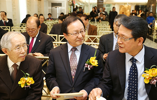 | ▲한국교회연구원 신임원장 취임식의 순서자들. 왼쪽부터 손봉호 고신대 석좌교수, 황용대 NCCK 회장, 전병금 한국교회연구원 신임원장. ⓒ사진=지유석 기자 |