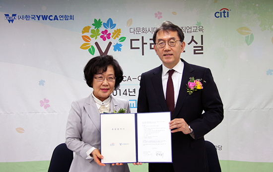 | ▲(사)한국YWCA연합회(회장 차경애)는 3월24일(화) 한국씨티은행(은행장 박진회)과 2015년 다문화청소년 직업교육 프로그램 <다래교실> 협약식을 가졌다. ⓒ사진제공=YWCA |