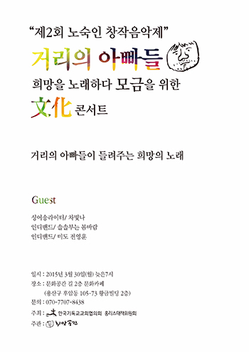 노숙인창작음악제 후원 [신한은행 100-029-248529 한국기독교연합사업유지 김영주]
