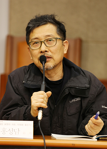 한국기독교교회협의회(NCCK) 언론위원회(위원장 전병금 목사, 이하 언론위)는 3월26일(목) 오후 서울 종로구 연지동 한국기독교회관 2층 조에홀에서 “벼랑 끝에 몰린 표현의 자유, 이대로 좋은가!”를 주제로 토론의 자리를 마련했다. 토론회 패널로는 세월호 침묵시위 ‘가만히 있으라’ 제안자인 용혜인 씨, 홍성담 화백, 신학림 <미디어오늘> 사장이 나섰고, 이어진 토론에서는 촛불인권연대 한웅 변호사가 발언했다.