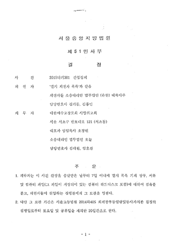 | ▲법원의 결정문. |