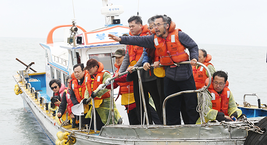 다른 배에 탑승했던 목회자 및 성도들 역시 감정을 억누르지 못하는 모습이었다. 이들은 바다에 흰 국화를 던지며 실종자들의 이름을 외쳤다. 특히 김홍술 목사(전 애빈교회 담임목사)는 노란 부표가 마치 구조를 기다리는 아이들인 양 힘껏 몸과 팔을 뻗으며 희생자들의 넋을 위로했다.