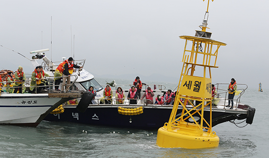 4월3일(금) 예수 그리스도께서 십자가에 달려 죽으심을 기념하는 성 금요일을 맞아 한국기독교교회협의회(NCCK, 김영주 총무)와 세월호 참사 희생자 및 실종자 가족, 그리고 일반 성도 80여 명이 세월호 침몰 지점을 찾았다.