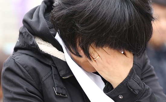 | ▲5일(일) 오후 서울 광화문 광장에서 ‘고난 받는 이들과 함께하는 2015부활절 연합예배’가 열린 가운데 실종자 허다윤 학생의 어머니 박은미 씨가 흐느끼며 증언하고 있다. ⓒ사진=지유석 기자 |