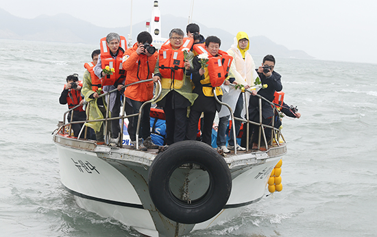| ▲지난 4월 3일 성금요일 NCCK 주요 관계자들은 팽목항에서 출발해 세월호 침몰지점 현장을 찾아 선상기도회를 가진 바 있다. ⓒ사진=지유석 기자 |