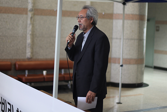감리교신학대학교 교수평의회(회장 유태엽 교수)는 <감리교신학대학교 인사 비리 규탄 및 이사장 퇴진 촉구 기자회견>을 지난 4월6일(월) 오후 감리교신학대학교 백주년기념관 1층 로비에서 열었다. 평의회는 이규학 이사장의 인사특혜비리를 성토하며 이사장 퇴진을 요구했다.