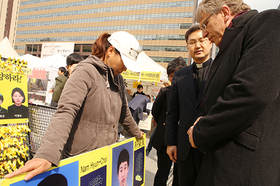 트베이트 총무는 광화문 광장 일대를 돌며 희생자‧실종자 가족들과 이야기를 나누고 그들을 위해 기도했다.