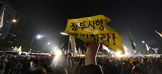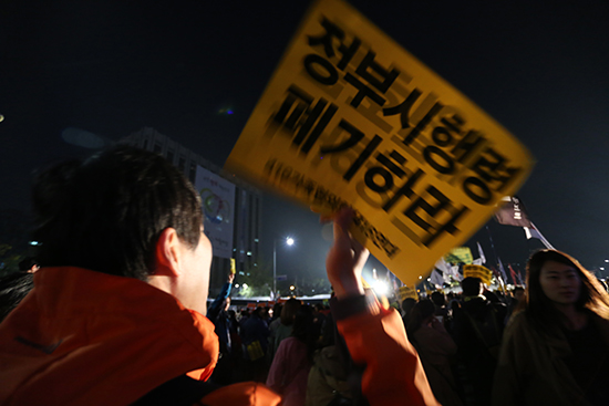 | ▲지난 11일(토) 오후 서울 광화문광장에서 <기억하라 행동하라 행사 및 정부시행령 폐기 총력 행동> 집회가 열린 가운데 시민들이 ‘시행령 폐기,’ ‘세월호 선체 인양’을 요구하며 경찰과 대치하고 있다. ⓒ사진=지유석 기자 |