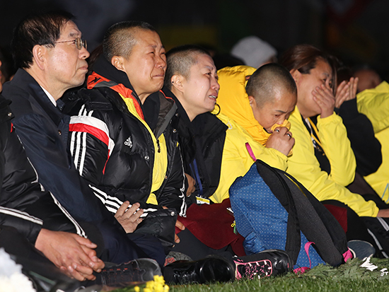 | ▲16일(목) 오후 서울 시청광장에서 세월호 추모 문화제 “4.16 약속의 밤” 행사가 열린 가운데 유가족들의 슬픔을 가누지 못하고 오열하고 있다. ⓒ사진=지유석 기자 |