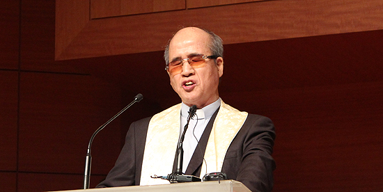 | ▲지난 2013년 한국기독교교회협의회 장애인주일 연합예배에서 시각장애인 조동교 목사(예장총회 장애인복지선교협의회 초대회장, 가나안교회)가 기도하고 있는 장면. ⓒ베리타스 DB |
