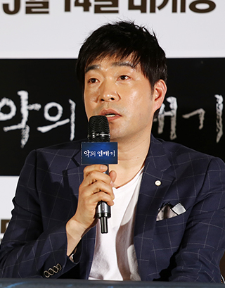 | ▲2015년 첫 스릴려 <악의 연대기> 시사회 및 기자간담회가 6일(수) 왕십리 CGV에서 열린 가운데 타이틀 롤 최 반장 역의 손현주가 기자들의 질문에 답하고 있다. ⓒ사진=지유석 기자 |