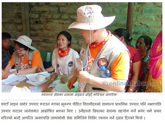<미디어 오늘>은 5월13일(수) 굿피플 의료진들이 “재난으로 힘들어하고 있는 네팔 이재민들에게 비타민 몇 알과 성경을 전달하고 있다”며 “그들은 이런 재난은 예수가 아니라 큰 거인과 같은 힌두교 신들을 믿어서 벌어진 일이므로 예수님을 믿어야 한다고 했다”고 네팔 현지 매체 <하바르>의 기사를 인용해 보도했다.