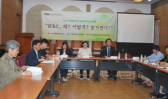 한국기독교교회협의회(NCCK) 언론위원회(위원장 전병금 목사)는 5월14일(목) 오후 종로구 연지동 기독교회관 2층 조에홀에서 연속토론회를 개최했다. 주제는 “MBC, 왜? 어떻게? 망가졌나!”이며, 민주언론연합 김언경 사무처장이 “MBC의 보도 여기까지 망가졌다”를, 전국언론노조 MBC본부 김혜성 홍보국장이 “MBC 보도ㆍ제작 조직 파행”을, 상지대 김경환 교수가 “MBC 지배구조 개선방안”을 발제했다. 발제자들은 올해 들어 부활한 NCCK언론위원회의 설립 취지대로 언론의 공공성 확보에 논의의 초점을 두고서 공영방송인 MBC의 공공성 상실을 성토하고 공공성 회복을 위한 방안을 제안했다.