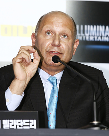 | ▲<슈퍼배드> 시리즈 제작사인 일루미네이션 엔터테인먼트의 크리스 멜라단드리 회장이 5월18일(월) 서울 명동 롯데시네마 에비뉴엘에서 내한 기자회견을 가졌다. ⓒ사진=지유석 기자 |