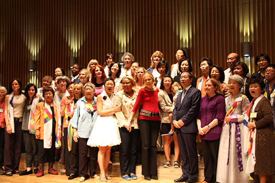 | ▲‘2015국제여성평화걷기(WomenCrossDMZ, 이하 WCD)’의 국제평화여성단 30여 명은 방한 2일차인 25일(월) 서울시청 다목적홀에서 열린 ‘2015 국제여성평화회의’에 참석했다. ⓒ사진제공= 한국YWCA |