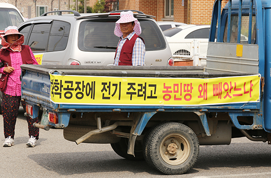 그러나 이곳은 지금 전쟁터나 다름없다. 한국전력(한전)이 벌이는 송전철탑 송전선로 공사 때문이다. 군산시 미성동·옥구읍·회현면 등이 주 대상지다. 한전은 이 지역 주변 논 곳곳에 공사용 펜스를 치고 철탑 공사를 진행 중이다. 어떤 곳은 노랗게 익은 보리가 눈에 띠었고, 또 다른 곳은 모내기를 위해 물을 가둬놓은 논이었다.