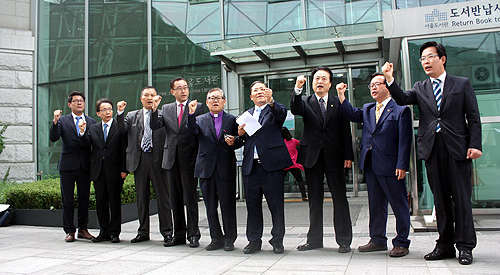 | ▲얼마 전 퀴어문화축제 행사를 반대하는 한국교회동성애대책위원회 관계자들이 서울시청 앞에서 해당 행사에 대해 서울시의 직권 취소를 촉구하던 모습. ⓒ베리타스 DB |