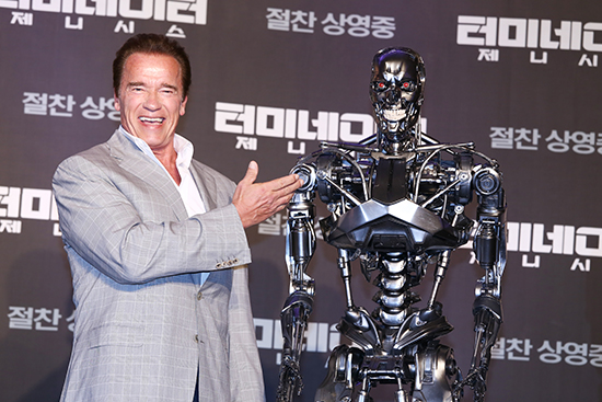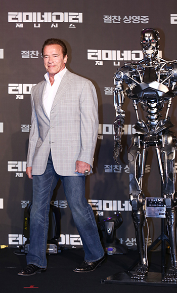 ‘터미네이터’ 아놀드 슈워제네거가 신작 <터미네이터 – 제니시스> 홍보 차 한국을 찾았다. 영화에서 사라 코너 역을 맡았던 에밀리아 클라크도 동행했다. 아놀드 슈워제네거는 7월2일(목) 서울 강남 리츠 칼튼 호텔에서 열린 기자회견에서 자신을 톱스타 반열에 올려준 ‘터미네이터’ 시리즈에 아낌없는 애정을 드러냈다.