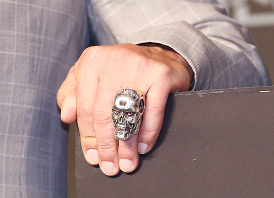 | ▲아놀드 슈워제네거는 약지에 터미네이터 모형 반지를 끼고 기자회견에 임했다. ⓒ사진=지유석 기자 |