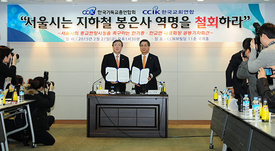 지하철 9호선 봉은사역명을 두고 총공세를 벌였던 보수 기독교계가 체면을 구겼다.