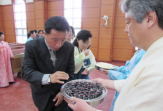 | ▲지난해 8월 봉수교회에서 남북교회 성도들이 성찬례에 참여하고 있다. ⓒ사진제공=NCCK |