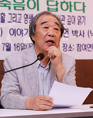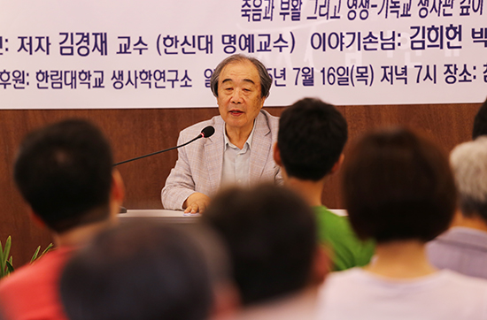 한신대 김경재 명예교수(본지 자문위원)가 신간 『죽음과 부활 그리고 영생: 기독교 생사관 깊이 읽기』(청년사, 2015)을 낸 가운데 7월16일(목) 오후 서울 종로구 자하문로 참여연대 2층 아름드리 홀에서는 신간 출간기념 북토크 행사가 열렸다. “삶이 묻고 죽음이 답하다”는 주제로 진행된 북토크에서 저자인 김경재 교수는 “사후생은 ‘앎’이라는 논지를 긍정적으로 본다”고 밝혔다.
