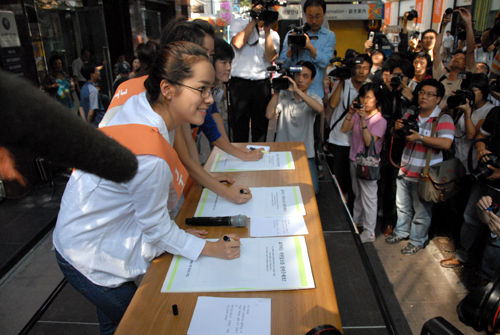 텔런트 한지민씨는 서명에 앞서 “우리의 동포이고 가족이고 민족인 북한 어린이들이 먹을 것이 없어 굶어죽어가고 있는 현실”이라며 “우리의 마음, 한 뜻을 함께 모아 서명해 주길 바란다”고 호소했다.