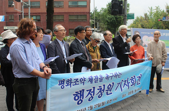 한국기독교교회협의회(NCCK, 총무 김영주 목사)는 한국YMCA전국연맹(이사장 이신호), 한국YWCA연합회(회장 차경애)와 공동으로 정전협정일인 7월27일(월)에 박근혜 대통령에게 ‘평화조약체결을 촉구하는 청원’을 진행했다. 이 청원서에는 독일, 캐나다 등 외국인 700여명을 포함하여 총 12,935명이 서명했다.