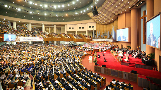 | ▲한기총은 광복절인 15일(토) 오전 서울 여의도순복음교회 대성전에서 열린 <해방 70년 광복절 67주년 감사예배>에서 “기독교 신앙의 모범을 보인 장로로서 자유민주주의를 수호하고 대한민국의 부흥과 발전에 기여했다”며 이 전 대통령에게 ‘대한민국건국공로상’을 수여했다. ⓒ사진제공=한기총 |