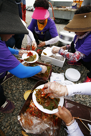 밀양 주민들은 인사말에 이어 준비해온 음식을 군산 주민들에게 대접했다. 밀양 주민들은 군산 주민들과 뒤섞여 음식을 나누며 이야기꽃을 피웠다.