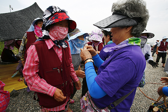 | ▲18일(화) 전북 군산 새만금 송전철탑 건설현장을 찾은 밀양 송전탑 대책위 주민들이 군산 주민들에게 인사말을 건네고 있다. ⓒ사진=지유석 기자 |