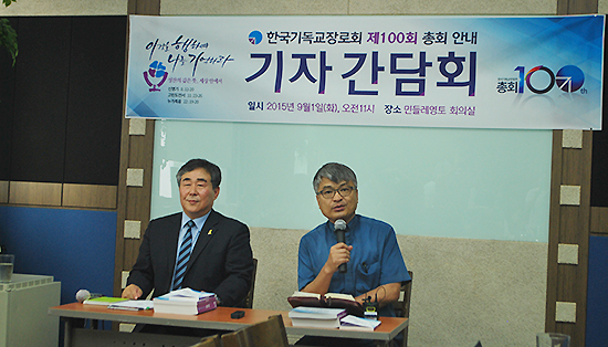 한국기독교장로회(기장, 총회장 황용대 목사)가 제100회 총회를 앞두고 9월1일(화) 오전 한국기독교회관 2층 회의실에서 기자간담회를 개최했다. 이번 총회의 주제는 “이것을 행하여 나를 기억하라: 성찬의 깊은 뜻, 세상 안에서”이다. 기자간담회는 총회 총무인 배태진 목사와 부총무인 이길수 목사가 진행했다.