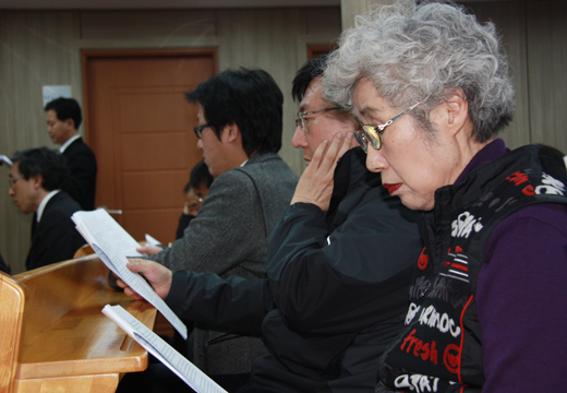 | ▲ 4일 삭개오작은교회에서 열린 김경재 목사의 ‘갈릴리 복음 성서학당’에 참석한 신자들이 자료집을 유심히 살펴보고 있다 ⓒ베리타스 |