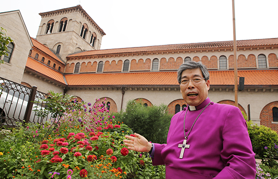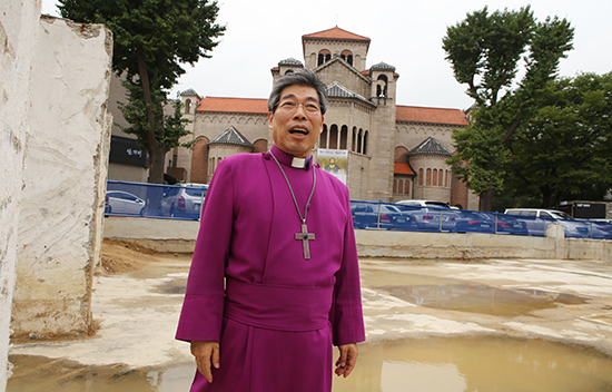 | ▲대한성공회 수장 김근상 주교가 주교좌성당 앞에서 포즈를 취하고 있다. ⓒ사진=지유석 기자 |