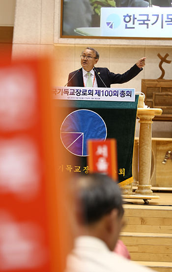 | ▲16일(수) 기장 제100회 총회 회무처리가 진행되고 있다. ⓒ사진=지유석 기자 |
