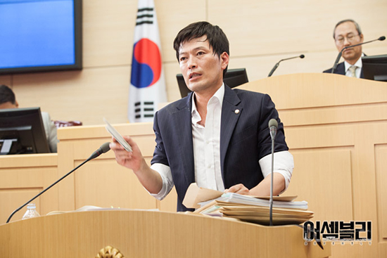 진상필 역을 맡은 정재영의 연기는 신들린 듯하다. 그는 <실미도>, <글러브>, <방황하는 칼날>, <플랜맨> 등 그간 출연한 영화에서 겉으로는 ‘까칠’하면서도 순수한 심성을 지닌 캐릭터를 연기해왔다. 그런 그에게 카랑카랑한 어조로 국민들의 가려운 곳을 시원스럽게 긁어주는 진상필 역은 그야말로 안성맞춤이었다. 정재영의 연기가 아니었다면 <어셈블리>는 평범한 정치 드라마로 머물렀으리라는 생각이다.