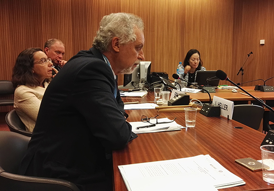 | ▲물과 위생에 관한 인권 담당 유엔특별보고관 레오 헬러 교수가 유엔인권협의회에서 발언하고 있다. ⓒ사진제공=WCC/Dinesh Suna |