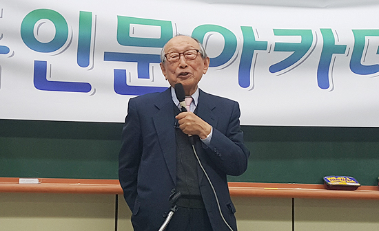| ▲김형석 연세대 명예교수가 강연하고 있다. ⓒ사진= 정승화 객원기자 |