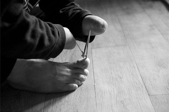 | ▲지뢰피해자의 모습. 지뢰 폭발로 양손이 절단됐다. ⓒ사진제공= NCCK |
