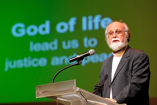 | ▲10차 부산 WCC 총회에서 연설하고 있는 Walter Altmann 박사. ⓒ사진제공= WCC news |