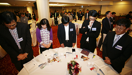 | ▲23일(금) 오후 충남 온양시 온양 관광호텔에서 열린 한국기독교학회 제44차 학술대회 개회예배에 참석한 신학자들이 예배 중 기도하고 있다. ⓒ사진=지유석 기자 |