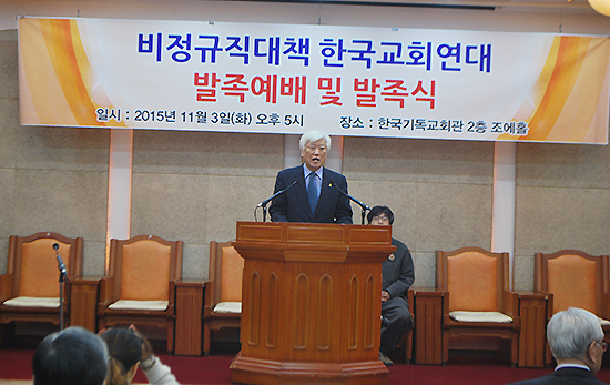 한국기독교교회협의회(총무 김영주 목사)는 11월3일(화) 오후 5시 한국기독교회관 2층 조에홀에서 비정규직대책 한국교회연대 발족예배 및 발족식을 거행했다.