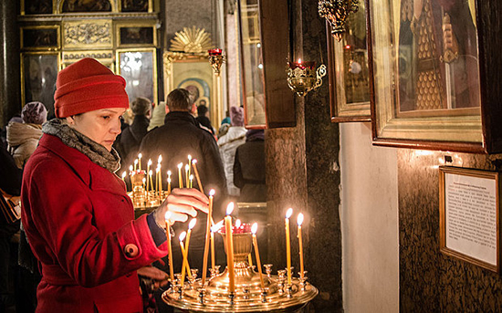 | ▲한 여성이 세인트페테스부르그의 카잔 성당에 마련된 여객기 사고 희생자를 위한 추도회에서 촛불을 켜고 있다. ⓒ사진제공= The Telegraph, UK |