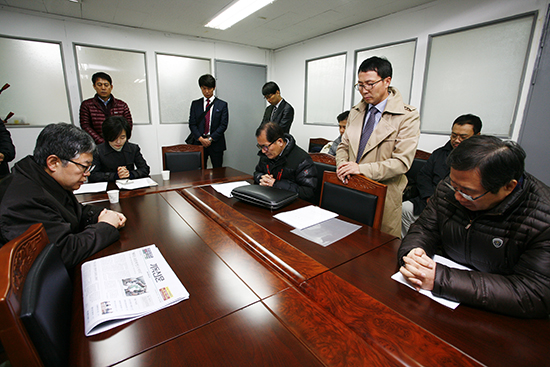 | ▲지난해 삼일교회 송태근 목사와 관계자들이 전병욱 목사 면직 재판과 관련 기도하는 모임을 갖고 있다. ⓒ베리타스 DB |
