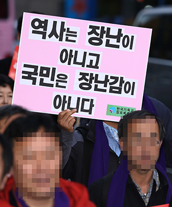 순례 참가자들은 “박근혜 정부는 교과서 국정화를 즉각 중단하라”, “한국사 교과서 국정화 반대한다” 등의 구호를 외치며 광화문 세월호 광장까지 행진했다.