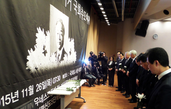 고 김영삼 전 대통령 서거 국회추모예배가 26일 오전 국회도서관 대강당에서 열렸다. 영결식에 앞서 열린 이 추모예배는 국회평신도5단체협의회, 4.19혁명UN유네스코등재 및 기념사업위원회, 4.19혁명국가조찬기도회, 4.19선교회 주최로 진행됐다.